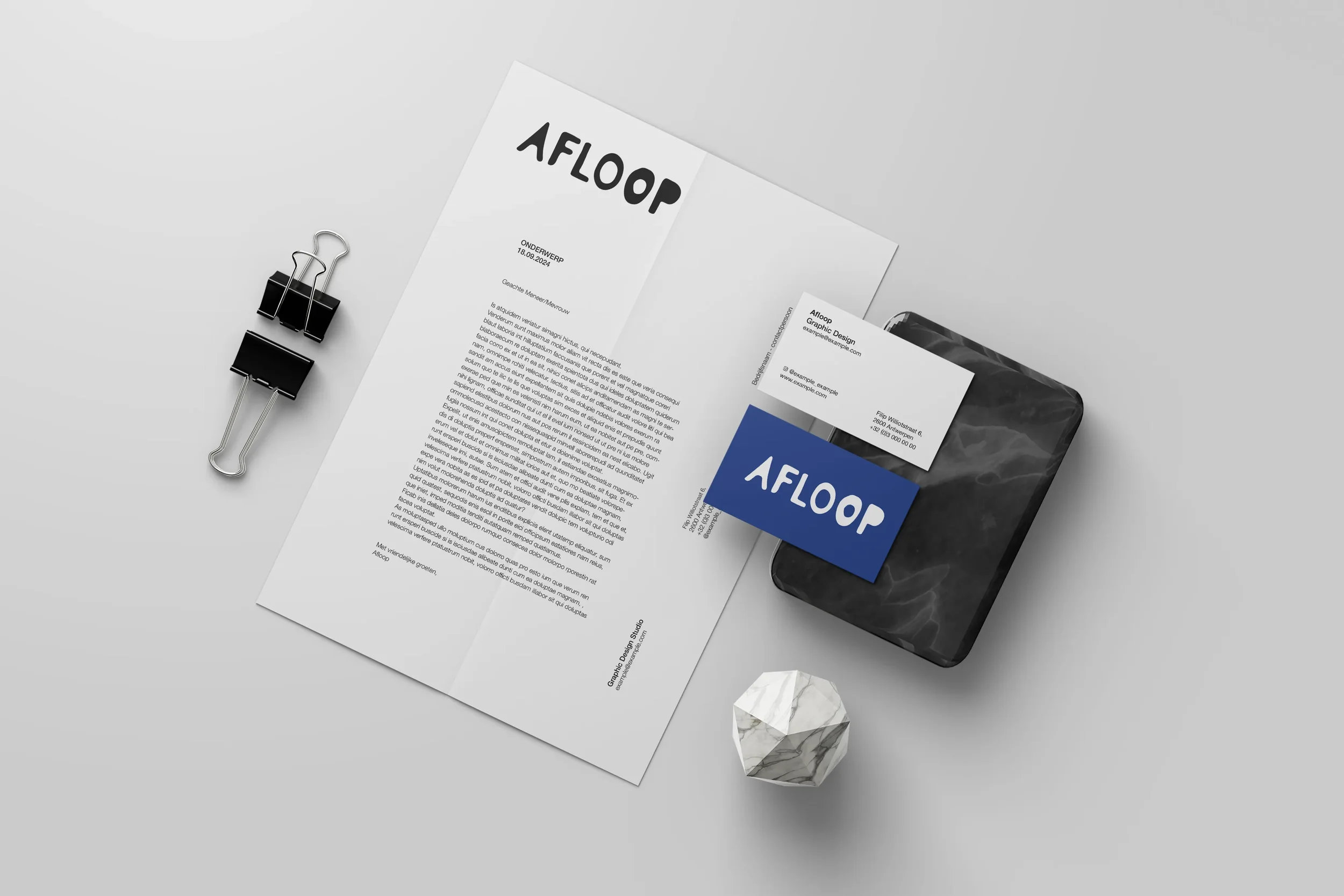 Designed a brand identity concept for a graphic design studio called AFLOOP. "Afloop" is a Dutch prepress term meaning "bleed." The lettering was hand-drawn, scanned, and vectorized to create a handmade aesthetic. Getting the spacing right was tricky, especially between those double O's. Created business cards and the full brand system to demonstrate how the identity would work across applications.